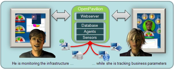 OpenPavilion is an easy to use observation tool for technicians and business people alike. Its goal is to reduce surveillance tasks and pinpoint the application status at a first glance. Administrators and users design visual dashboards creating tailor-made application perspectives. They can setup new application sensors easily using the incorporated Python scripting language. Sensors can be scheduled for 24/7 observation tasks considering differentiated weekday, weekend and holiday runtime clocks. Agents act on behalf of their authors sending warning and alarm mails bringing subscribers up to speed. They even escalate issues if persons of contact do not react in time. While OpenPavilion absorbs the recurrent observation tasks, users can focus on the nitty-gritty of their work !